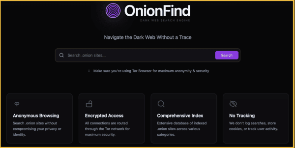 OnionFind is a search engine built for the Tor network. It’s made with privacy in mind and helps find working onion sites — those hidden websites on the dark web.